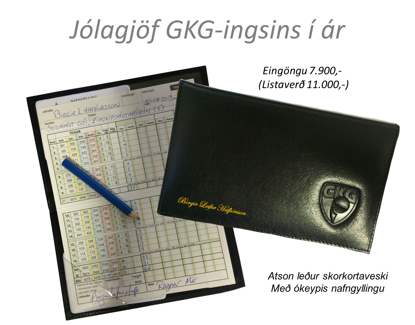 Jólatilboð dagsins hjá GKG er Atson skorkortaveski úr leðri með ókeypis gyllingu. Verð eingöngu 7.900,-. Tilvalið í pakkan hjá GKG-ingnum í ár! Allar vörur á 25% afslætti opið milli 09:00 til 13:00 fram að jólum!