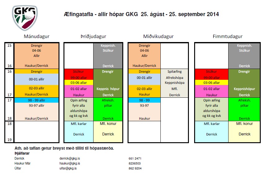 Sumaræfingum er lokið, en æfingar halda þó áfram til 25. september. Ný æfingatafla tók gildi í gær, mánudag, og hægt er að skoða töfluna með því að smella hér. Þeir krakkar sem greiddu æfingagjald fyrir sumarið þurfa ekki að greiða fyrir haustæfingarnar.