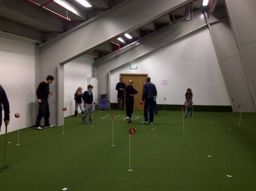 Í púttmóti dagsins var ákveðið að hafa sem flestar holur stuttar til að bjóða uppá lágt skor, en þar á móti var 18. holan höfð sem lengst eða 12 metra pútt.