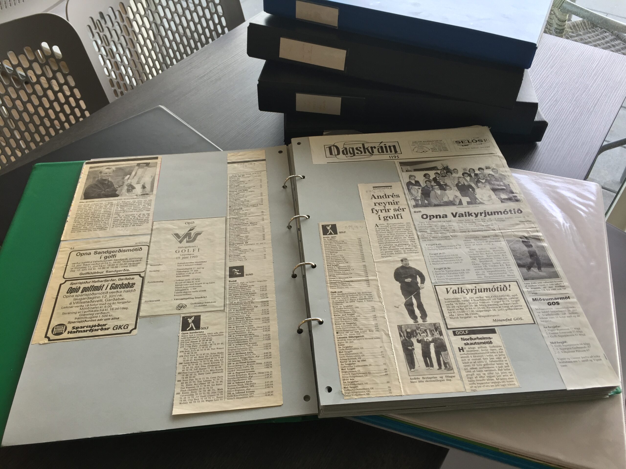 GKG-ingurinn Ágústa Guðmundsdóttir kom færandi hendi til okkar um daginn og afhendi okkur mikið safn af blaðaúrklippum. Safnið inniheldur nánast alla umfjöllun um golf í öllum íslenskum dagblöðum og tímaritum síðastliðin 26 ár.