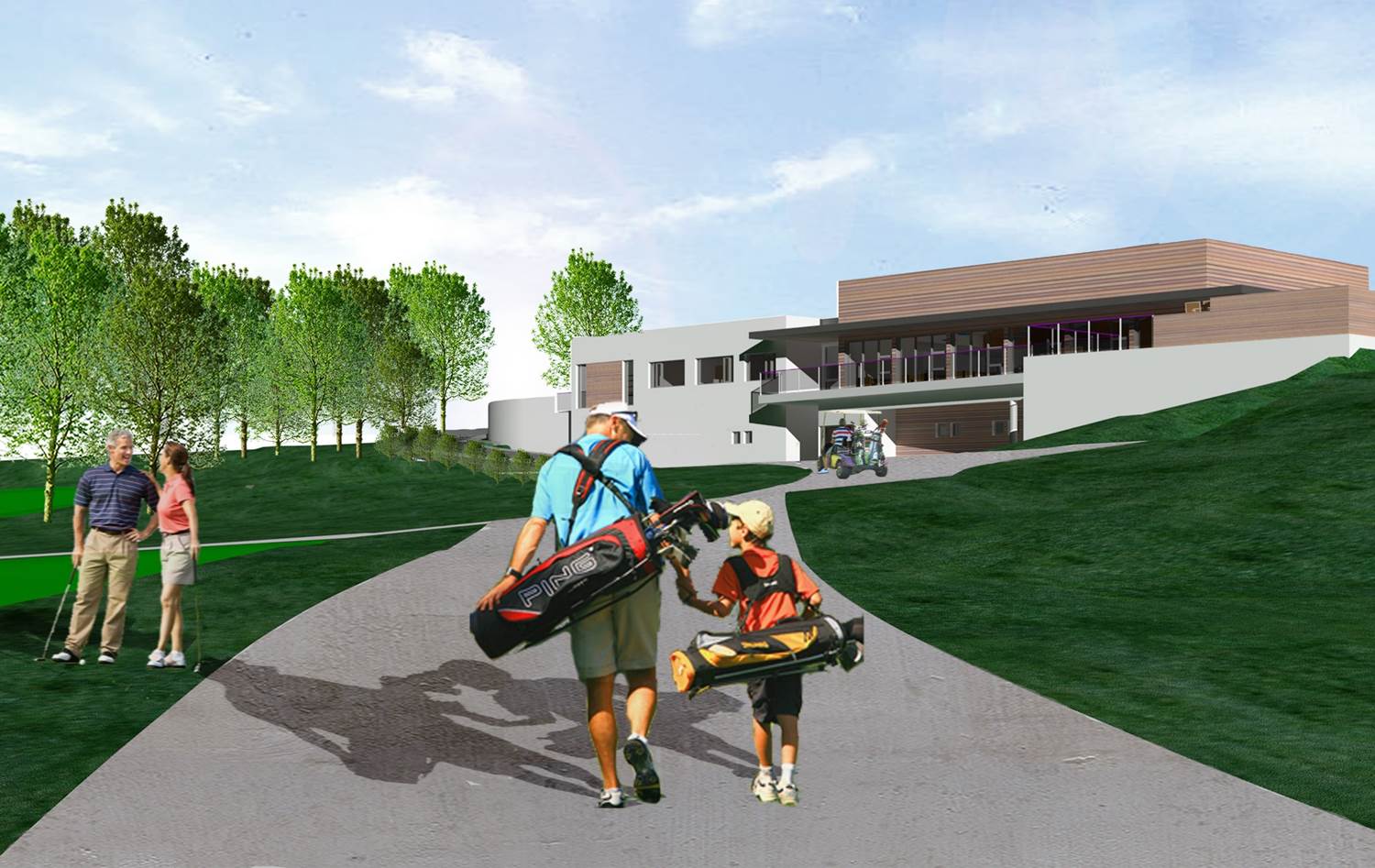 En hægt er að koma og slá í net og pútta á litlu flöt.